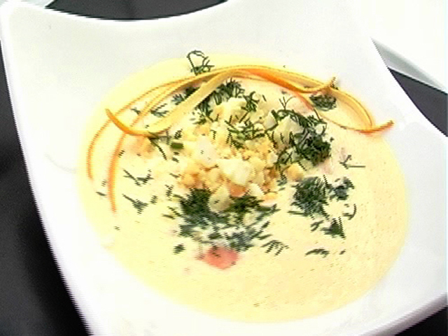 Холодный суп из морепродуктов поможет вкусно пережить жару.Состав:сок двух апельсинов;яйца — 2 штуки;чеснок — 1 зубчик;креветки — 12 штук;бальзамический уксус, оливковое масло, соль, укроп — по вкусу.
